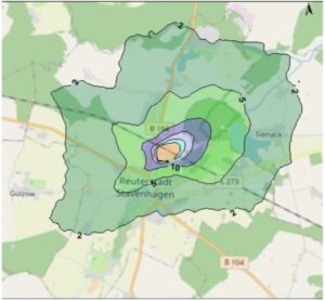 Die Ausbreitung der Gerüche wird wesentlich von den meteorologischen Parametern Windrichtung, Windgeschwindigkeit und dem Turbulenzzustand der Atmosphäre bestimmt. Da in Stavenhagen keine DWD- Wetterstation vorhanden ist, wurde mit Trollenhagen eine geeignete Ersatzstation ermittelt und eine qualifizierte Prüfung der Übertragbarkeit der Messdaten durchgeführt. Als repräsentativer Zeitraum wurde im Rahmen der Prüfung aus dem Bezugszeitraum (01.10.2013 – 14.09.2020) das Jahr 2019 ausgewählt.